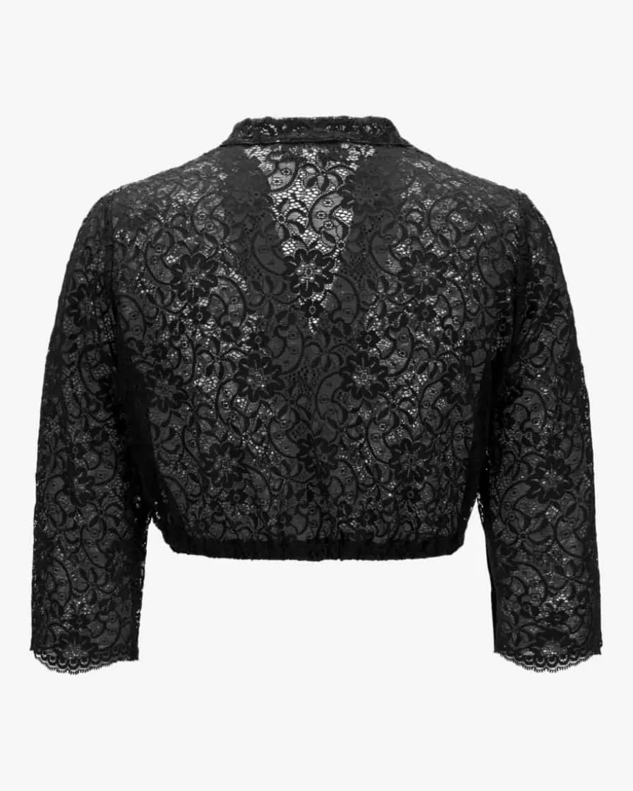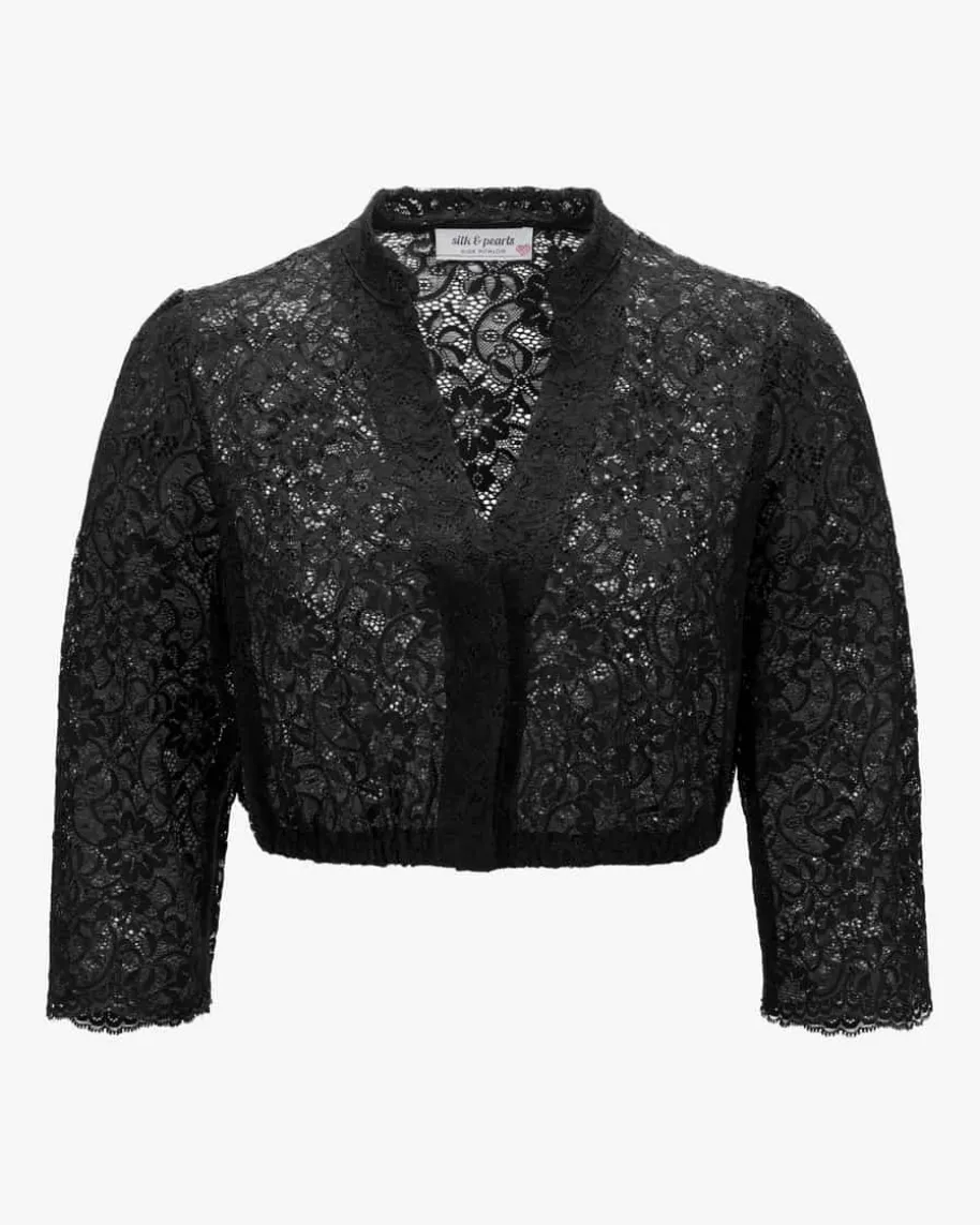 Dirndlbluse für Damen von Silk & Pearls in Schwarz. Das Modell überzeugt dankder feinen, floralen Spitze in traditionell-femininer Aufmachung, während diedezenten Puffärmel den Trachten-Look mit romantischer Note vollenden.