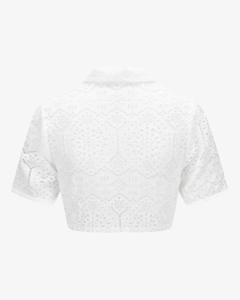 Dirndlbluse Semi-Transparent für Damen von LODENFREY in Weiß. Das Kurzarm-Modellüberzeugt dank dem Lochspitzen-Design in femininer Aufmachung, während derabgerundete Umlegekragen einen besonderen Touch verleiht.
