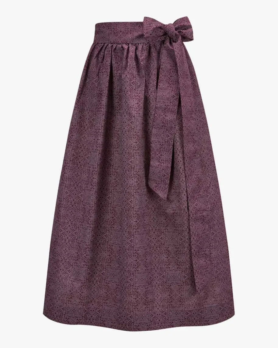 Dirndlschürze lang für Damen von LODENFREY in Weinrot. DasModell präsentiert sichmitleichter Baumwoll-Qualität und feinem Ornament-Muster – Einfemininer Begleiterfür vielseitige Trachten-Looks.