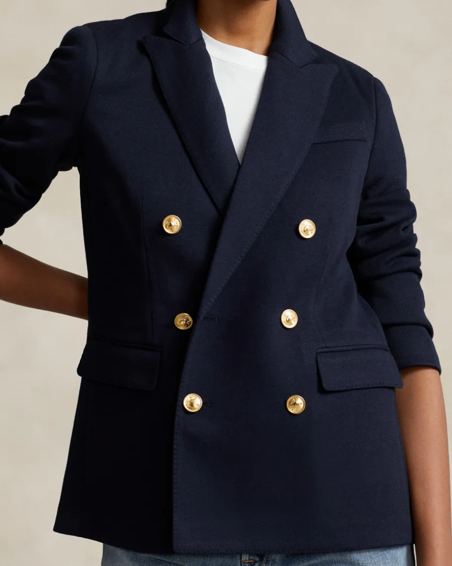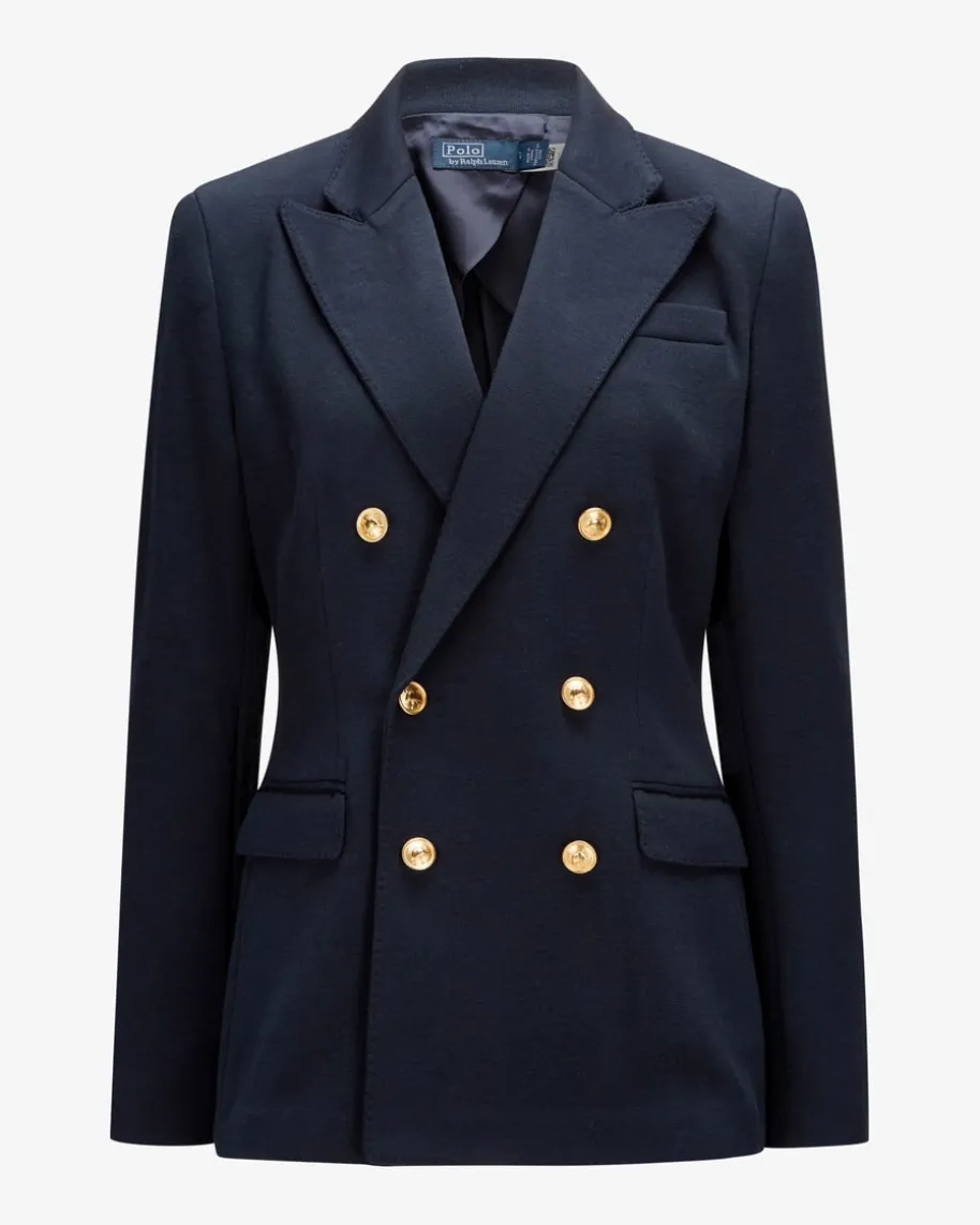 Doppelreiher-Blazer für Damen von Polo Ralph Lauren in Navy.Mit diesem zweireihigen Modellpräsentiert das Label einen eleganten Begleiter, der durchklassische Detailsgekonnt vollendet wird. Wappenknöpfe sorgen zudem für dasgewisse Etwas.