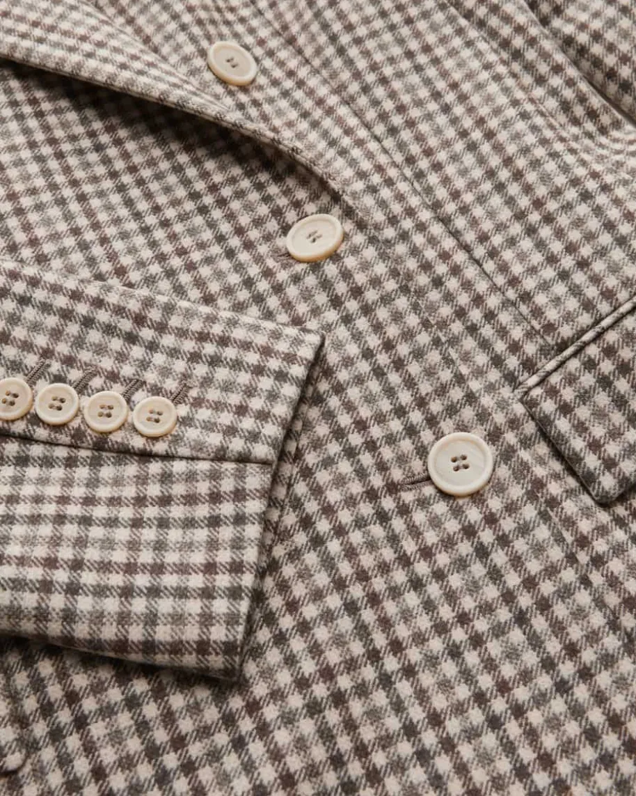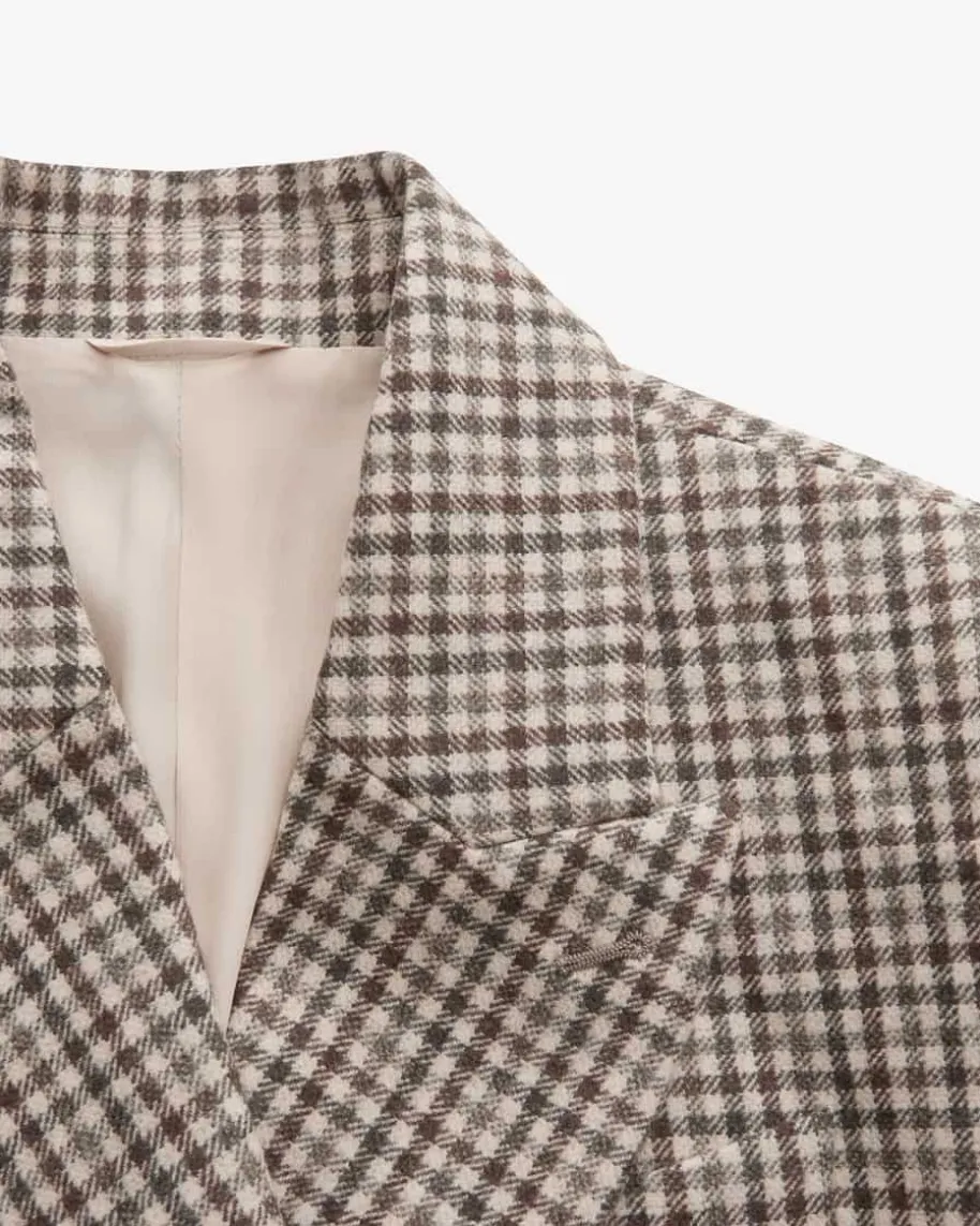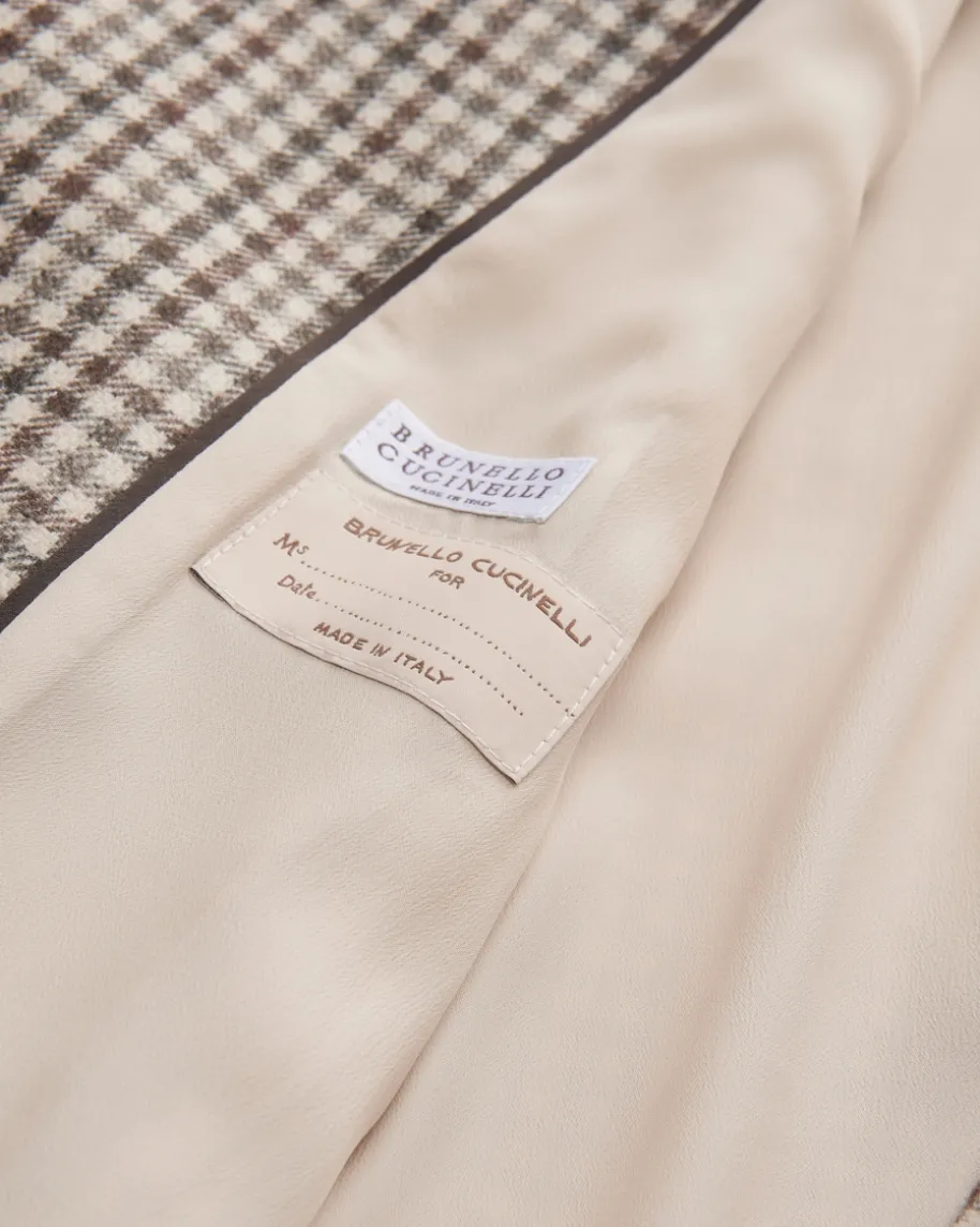 Doppelreiher-Blazer für Damen von Brunello Cucinelli in Creme, Braun und Taupe.Made in Italy – Das taillierte Modell avanciert dank des stilvollen Vichy-Dessins zum elegant-modischen Blickfang, während die Schurwoll-Qualität eineweiche Haptik kreiert.