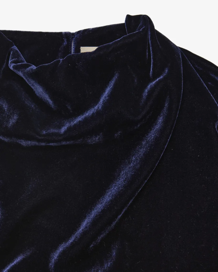 Dorian Samtkleid für Damen von Max Mara Studio in Nachtblau. Das Modell zeichnetsich durch die weiche Samt-Verarbeitung aus, welche sowohl haptisch als auchoptisch überzeugt. Die feminine Silhouette mit geraffter Taille rundet denextravaganten Abend-Look gekonnt ab.