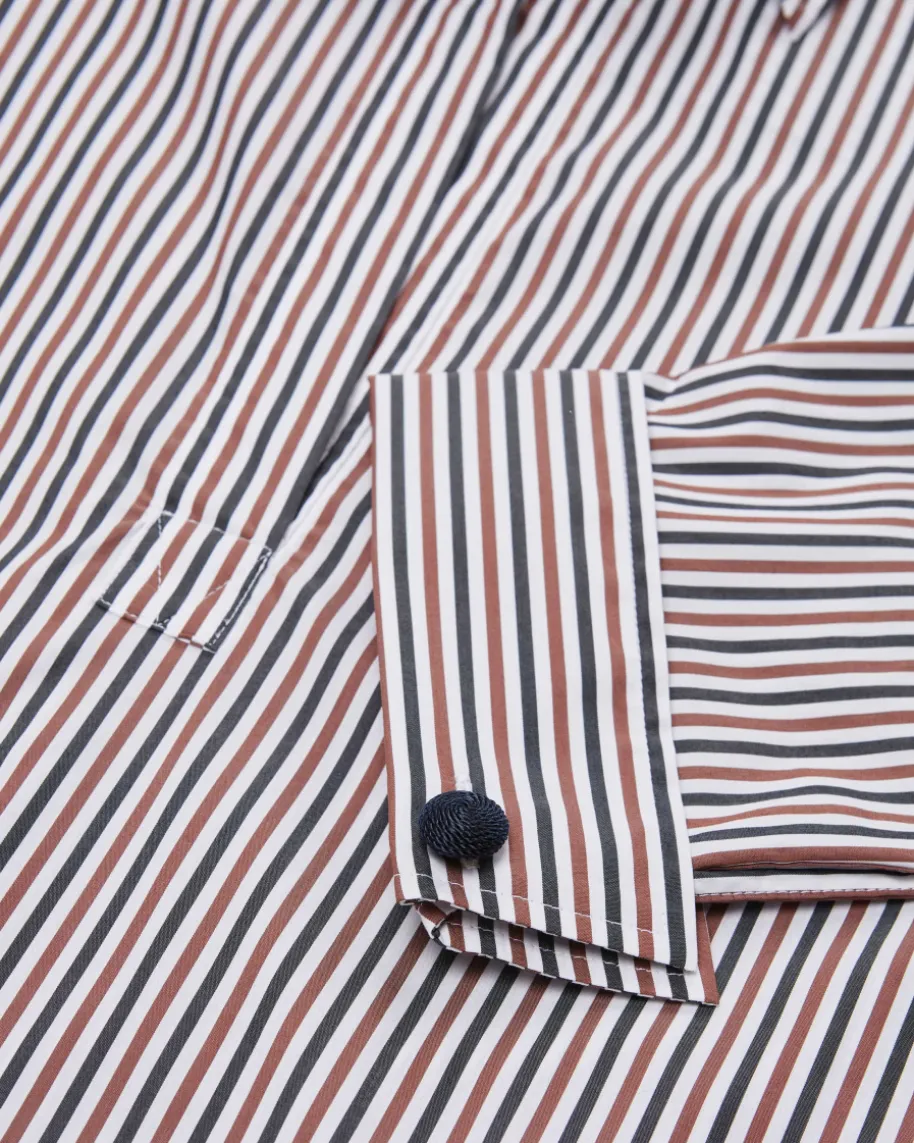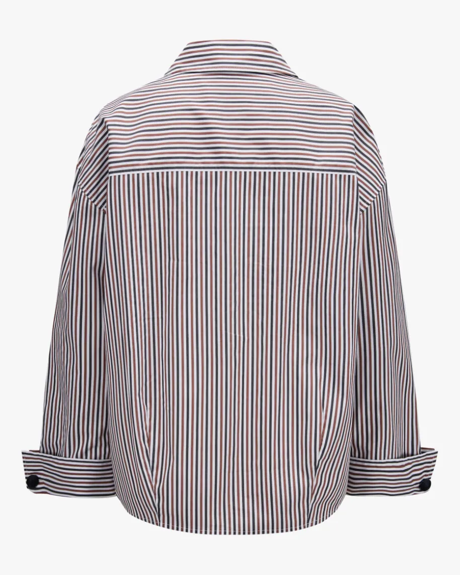 Draymond Bluse für Damen von Veronica Beard in Weiß, Kastanie und Navy. Ein NewYorker Label für clevere Power-Looks mit femininer Note. Auch dieses Modellüberzeugt mit angenehmem Baumwoll-Mix, während das Streifen-Design und derkombinierte Ausschnitt einen femininen Begleiter mit sportiven Touch kreieren.