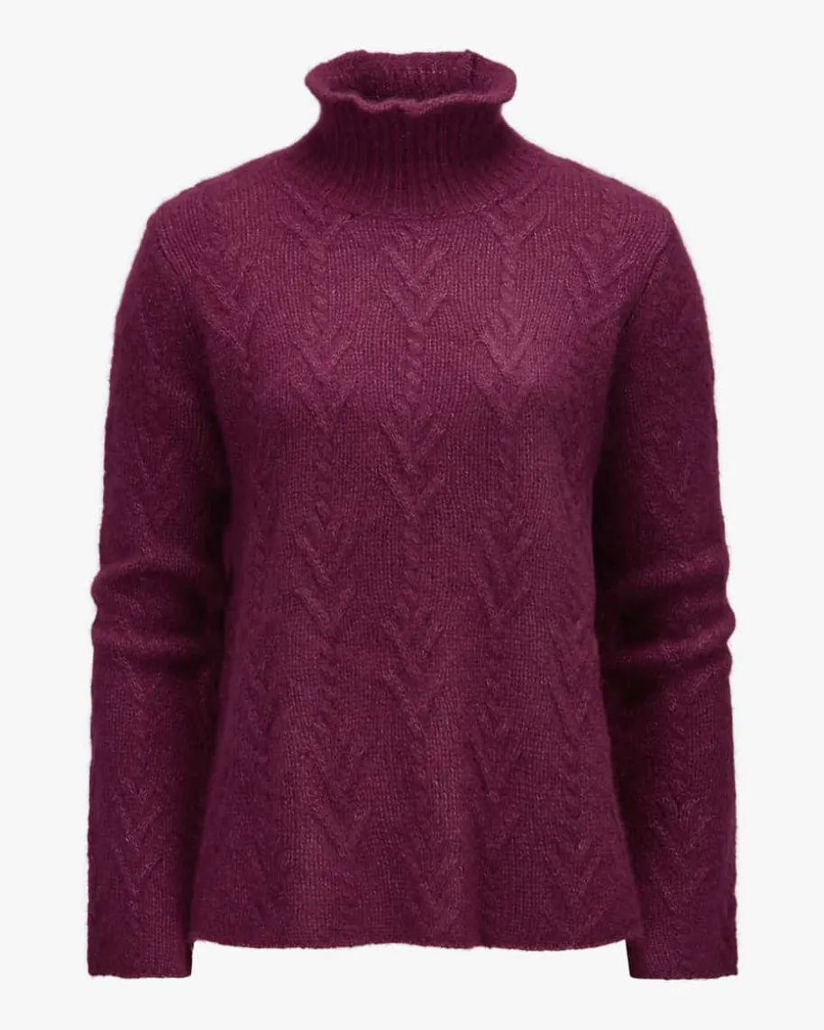 Easton Cashmere-Seiden-Pullover für Damen von Lu Ren in Burgundy. DiesesModell präsentiert sich in weicher Cashmere-Seiden-Qualität, während das moderneStrickmuster einen zeitlosen Strick-Begleiter kreiert.