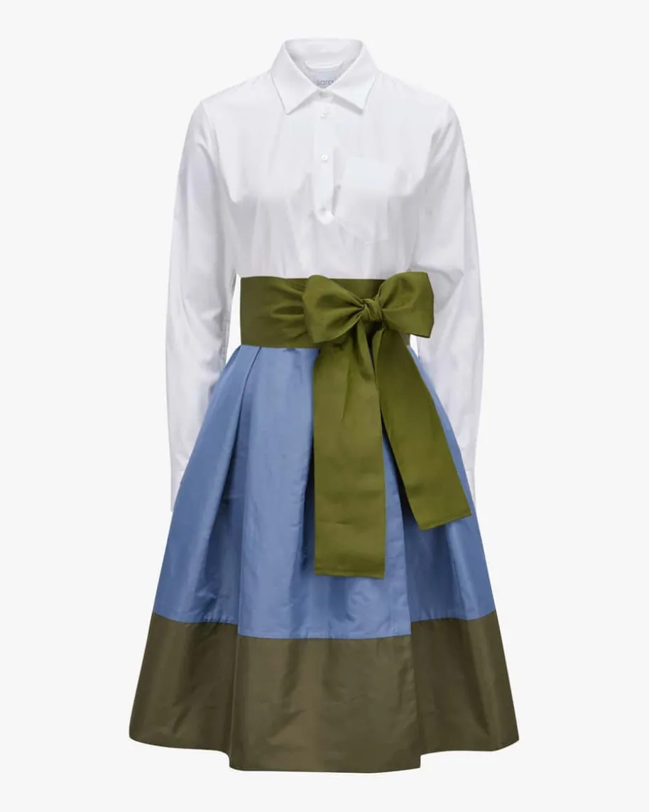 Elena Kleid für Damen von Sara Roka in Blau, Weiß und Oliv. Feminine Designs mitdem gewissen Etwas. Der Ursprung der Kollektionen findet sich im klassischenHerren-Hemd wieder, von dem die typischen Blusenkleider inspiriert sind. Auchdieses Modell präsentiert sich mit raffiniertem Material-Mix und klassischenHemd-Details. Das abnehmbare Taillenband zaubert eine feminine Silhouette undrundet den stilvollen Look gekonnt ab.