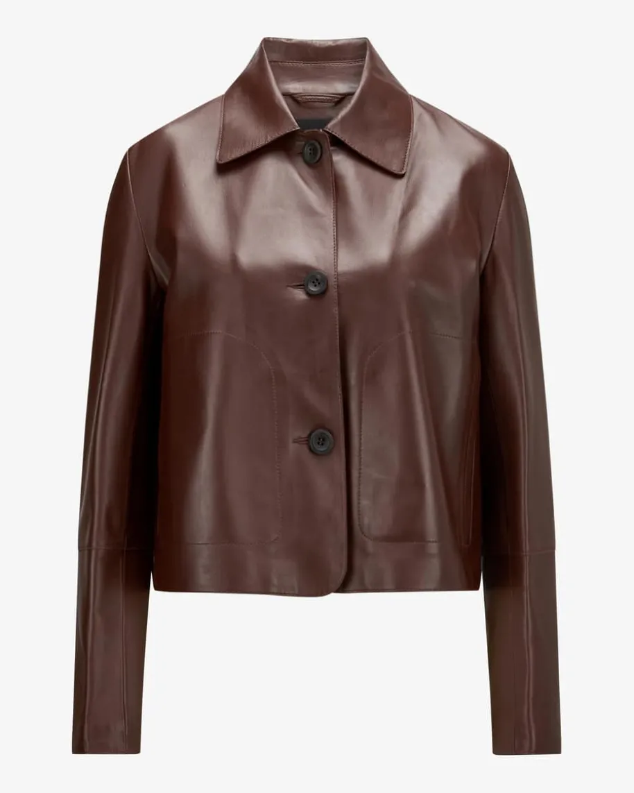 Emy Lederjacke für Damen von Arma in Mahagoni. Das Modell begeistert durch dieVerwendung hochwertiger Lammleder-Qualität, welche ein edles Gesamtbild kreiert.Zugleich avanciert die Jacke durch das cleane Design sowie der Ziernähte zumtrendsicheren Alltags-Favoriten.