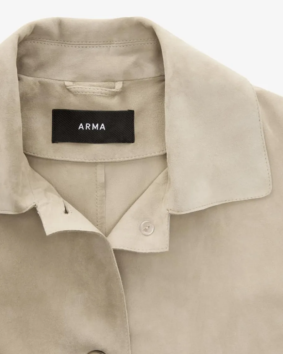 Emy Lederjacke für Damen von Arma in Beige. Das Modell begeistert durch dieVerwendung von hochwertigem Ziegenvelours, welches nicht nur eine weiche Haptikverspricht, sondern auch ein edles Gesamtbild kreiert. Zugleich avanciert dieJacke durch das modische Hemd-Design sowie feinen Ziernähten zum trendsicherenAlltags-Favoriten.
