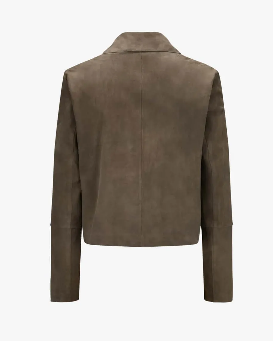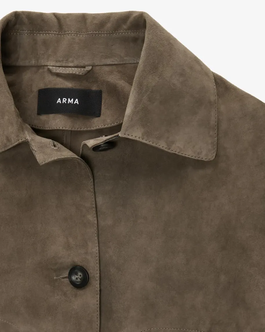 Emy Lederjacke für Damen von Arma in Graubraun. Das Modell begeistert durch dieVerwendung von hochwertigem Ziegenvelours, welches nicht nur eine weiche Haptikverspricht, sondern auch ein edles Gesamtbild kreiert. Zugleich avanciert dieJacke durch das modische Hemd-Design sowie feinen Ziernähten zum trendsicherenAlltags-Favoriten.
