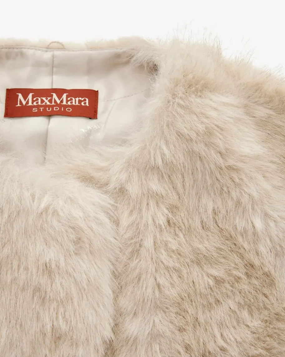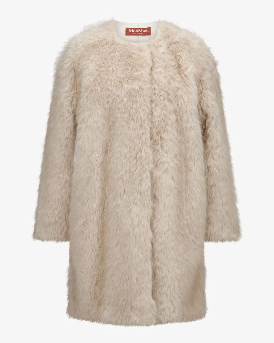 Eros Kunstfellmantel für Damen von Max Mara Studio in Beige. Das Modellbegeistert durch die besonders weiche Kunstfell-Aufmachung, welche einextravagantes Gesamtbild kreiert und jedem Herbst-Look einen besonderen Touchverleiht – Ein einzigartiges Statement-Piece.