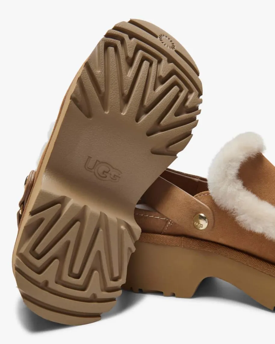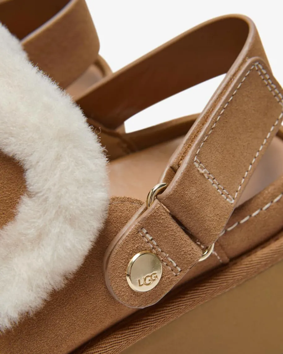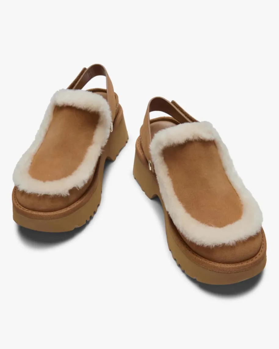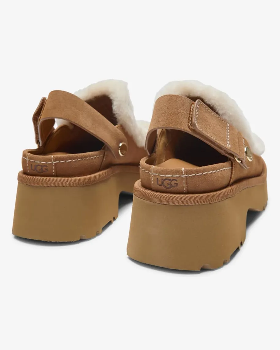 Esme Pantoletten für Damen von Ugg in Hellbraun. Das Modell besticht dank derhochwertigen Suede-Qualität sowie Details aus Lammfell in modischer Aufmachung,während der Plateau-Absatz ein feminines Gesamtbild kreiert.