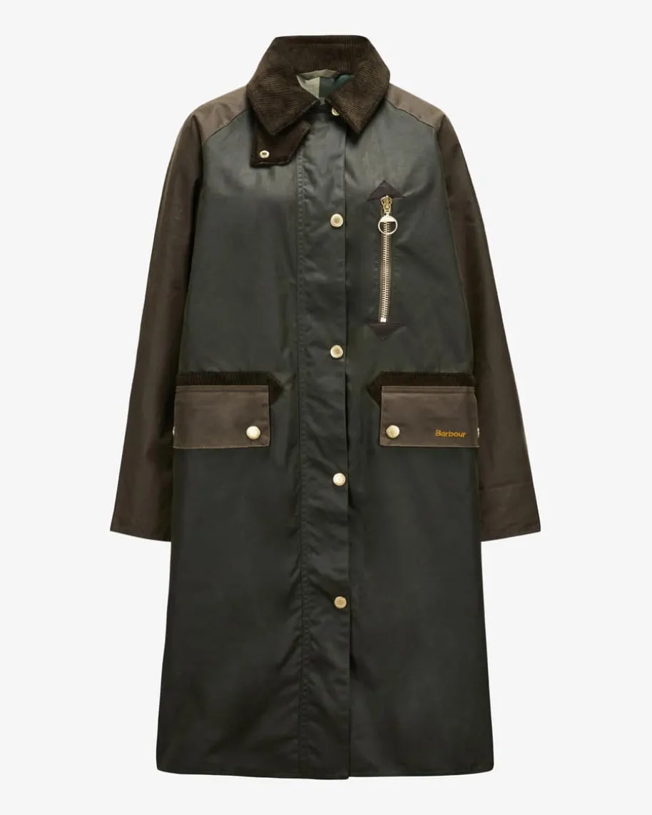 Evette Mantel für Damen von Barbour in Dunkelgrün und Oliv. Das 1894gegründete britische Traditionshaus ist weltberühmt für gewachste Outdoorjackenmit Heritage-Flair. Auch dieses Modell präsentiert sich dank der gewachstenBaumwoll-Qualität mit labeltypischem Flair, während die legere Passform mitklassischen Details einen vielseitigen Übergangs-Look kreieren.