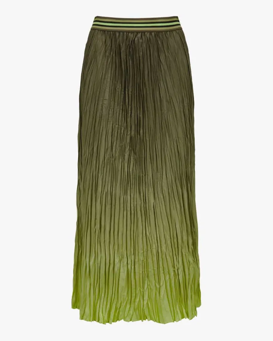 Faltenrock für Damen von Marc Cain in Oliv, Hellgrün und Lemon. Marc Cainverbindet Ästhetik und Kunst mit Lässigkeit und Natürlichkeit. InnovativeSchnitte und eine farbenfrohe Palette prägen das deutsche Label. Auch diesesleichte Modell präsentiert sich mit raffiniertem Crinkle-Effekt und modischemFarbverlauf, während der elastische Bund mit Streifenmuster den modischenStatement-Look gekonnt abrundet.