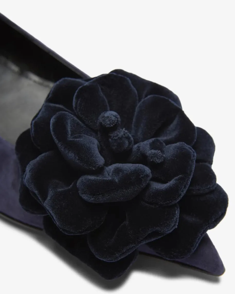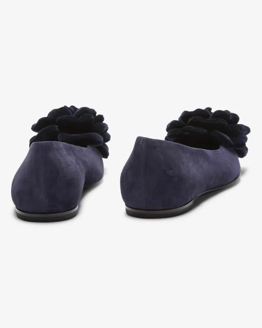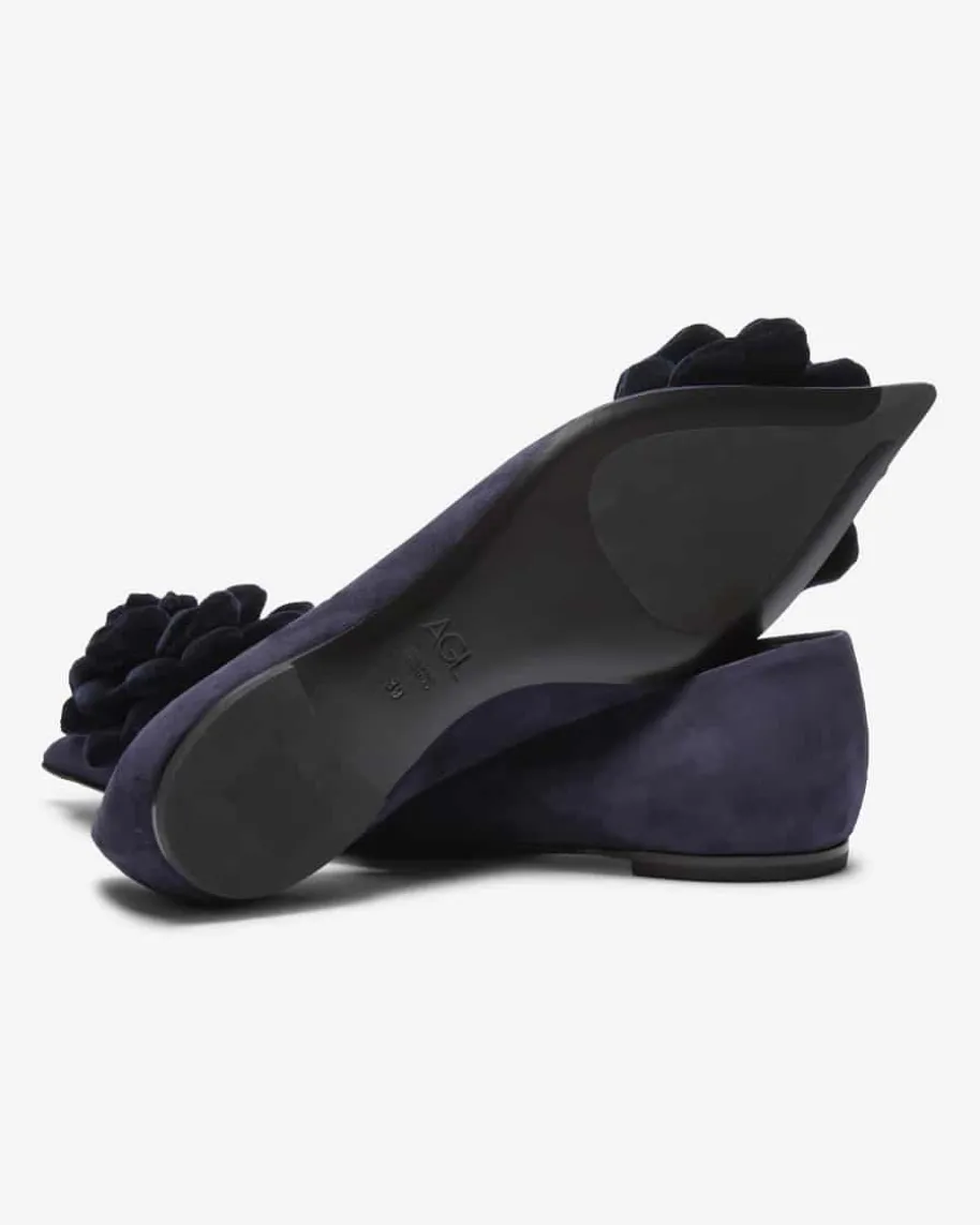 Fergy Rose Ballerina für Damen von AGL in Navy. Dank der hochwertigenVeloursleder-Qualität avanciert dieses Modell zu einem eleganten Begleiter,während die dekorative Blumen-Applikation in Samt eine besonderen Twistverleiht.