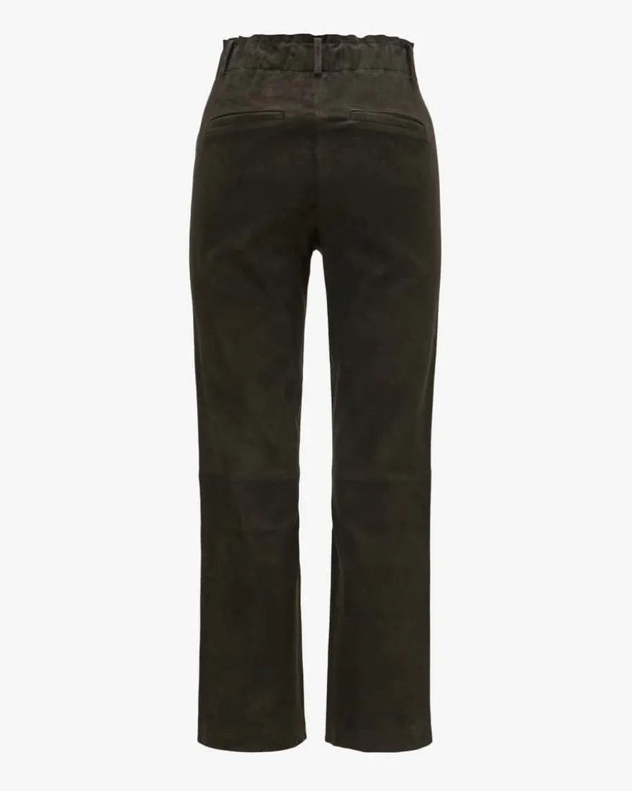 Ferrara 7/8-Lederhose für Damen von Arma in Anthrazit. Das Modell mit leichtausgestelltem Bein zeichnet sich durch die hochwertige Lammvelours-Qualität aus.Der stilsichere Begleiter erhält gleichzeitig durch den hohen Bund einenangesagten Look.