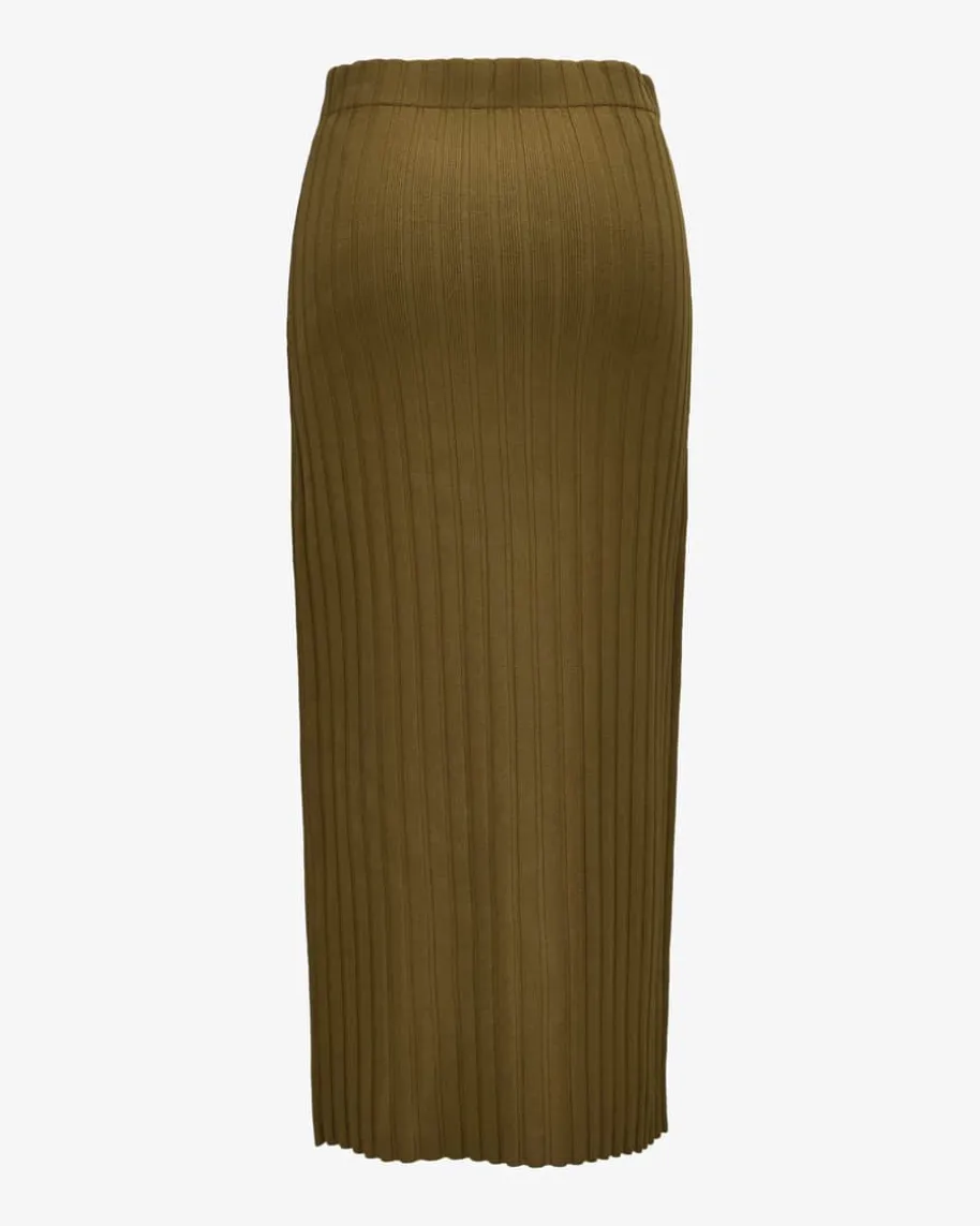 Fiemme Rock für Damen von By Malene Birger in Khaki. Edel und sportiv – Sopräsentiert sich das figurbetonte Modell in elastischer Material-Qualität.Während das markante Rippstrick-Dessin eine legere Note verleiht, verspricht dieGesamtaufmachung einen edlen Auftritt.
