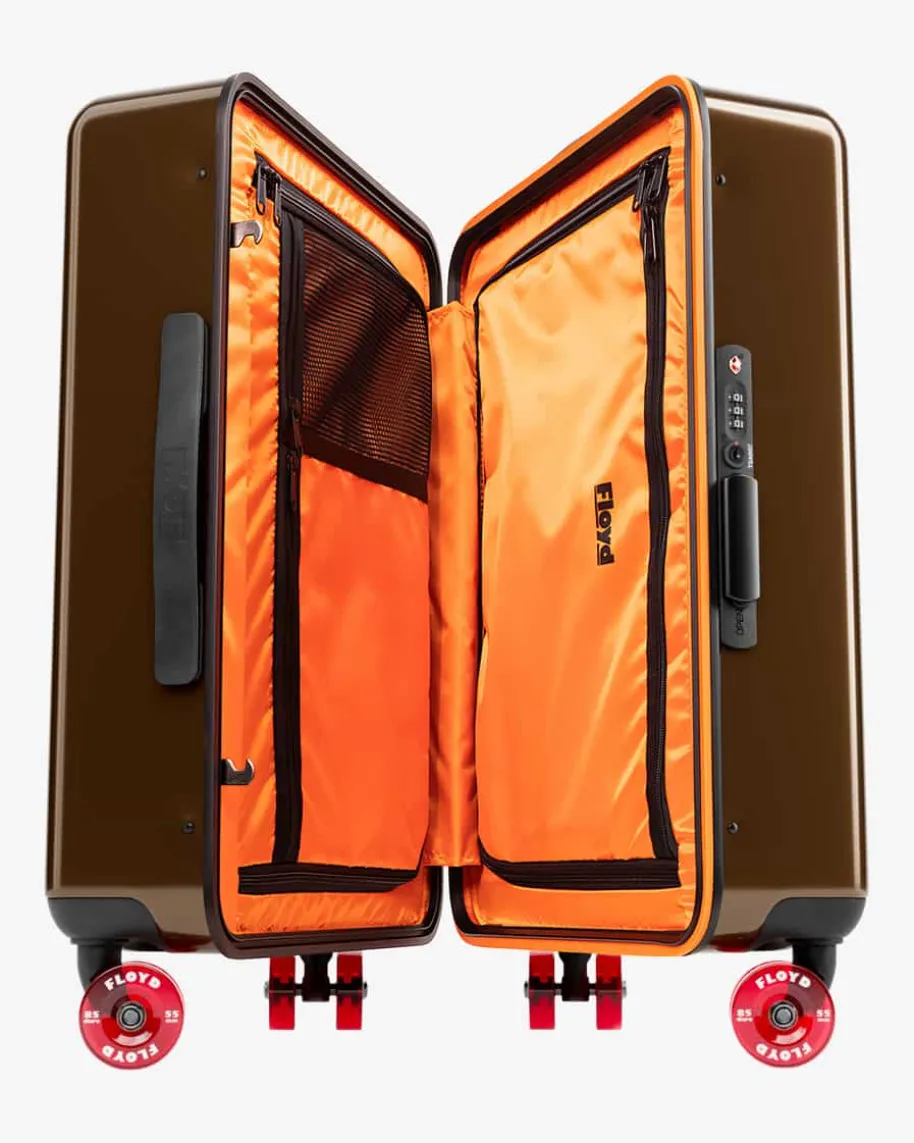 Floyd Cabin Koffer von Floyd in Dunkelbraun. Dieses Modell präsentiert sich dankder kompakten Größe als perfektes Handgepäck-Piece für Reisen. Die beidenkomplett verschließbaren Stauräume im Signature-Farbton Floyd Orange versprecheneinen zuverlässigen Schutz Ihres Eigentums, auch bei Turbulenzen. LabeltypischeLogo-Details sowie austauschbare Doppelrollen machen den Koffer zu einemmodischen Highlight mit individueller Note.
