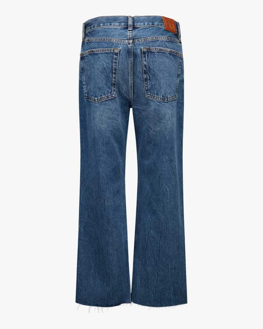 Gavin 7/8-Jeans für Damen von Anine Bing in Blau. Das Modell aus robustemBaumwoll-Denim begeistert mit leicht verkürzter Silhouette und modischem Used-Look, welcher durch die Kontrastnähte perfekt ergänzt wird.