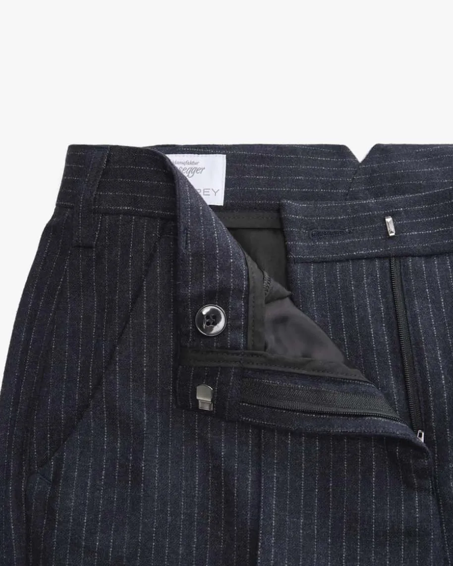 Gertrude Trachtenhose für Damen von Grasegger x Lodenfrey in Dunkelblau. Das inKooperation mit Lodenfrey designte Modell präsentiert sich in traditionellerAufmachung und leichter Merinowolle-Qualität, die für angenehmen Tragekomfortsorgt. Die feinen Nadelstreifen und klassische Details runden den Styleharmonisch ab.
