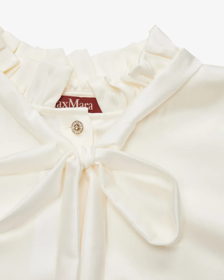 Gilles Seidenbluse für Damen von Max Mara Studio in Champagner. Weiblich,modern, tragbar – Max Maras femininere Linie. Auch dieses Modell in leichterSeiden-Qualität überzeugt mit weicher Silhouette, welche sich perfekt für Alltagund Office stylen lässt. Das changierende Design rundet das Gesamtbild gekonntab.