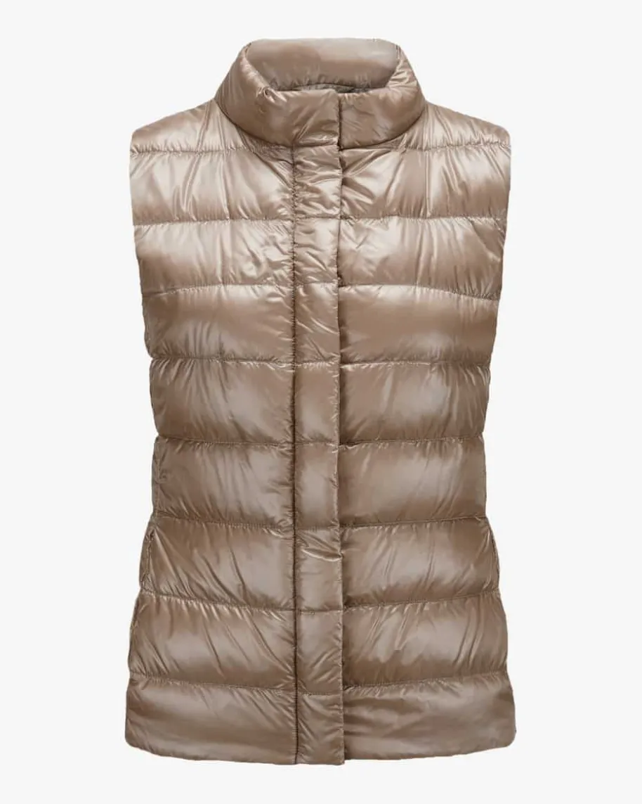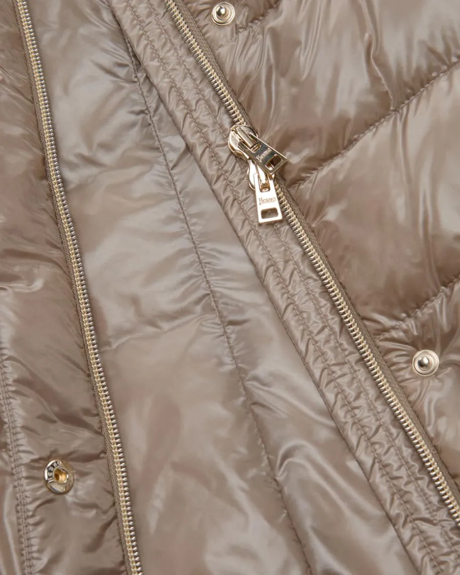 Giulia Daunenweste für Damen von Herno in Taupe. Das italienische Premium Labelist seit Jahren bekannt für seine besonders leichten Daunenjacken, die mitzeitlos-sportiven Designs überzeugen. Auch dieses Modell überzeugt durch seinebesonders leichte Material-Verarbeitung in changierender Stepp-Optik, währenddie taillierte Passform Ihre Figur feminin in Szene setzt.