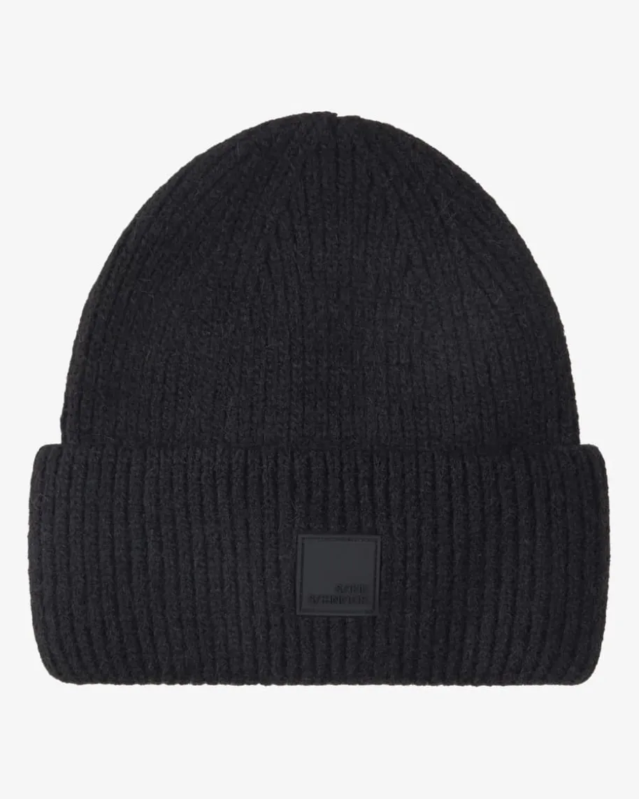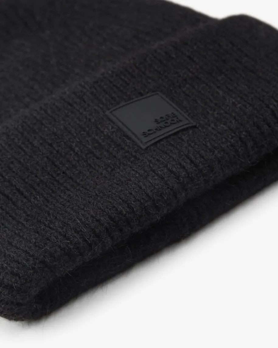 Mütze für Damen von Sofie Schnoor in Schwarz. Das Modell punktet mit angenehmerHaptik und modernem Rippstrick-Design, während das gummierte Logo-Emblem denLook gekonnt komplementiert.