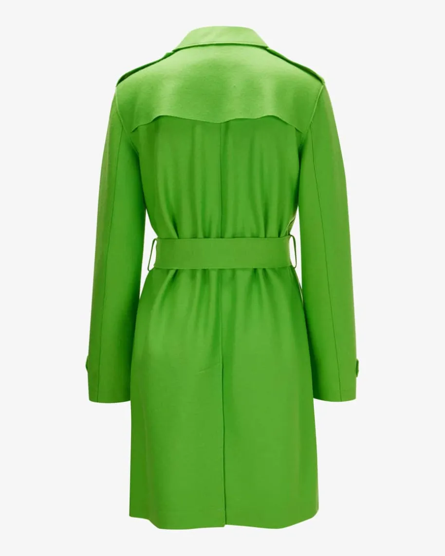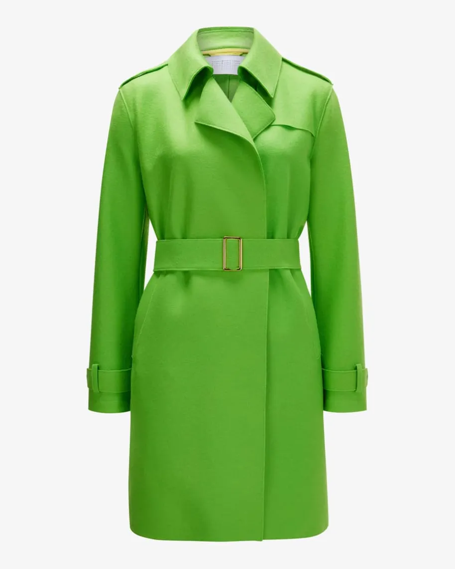 Golden Buckle Wollmantel für Damen von Harris Wharf London in Hellgrün. DiefeineSchurwoll-Qualität sorgt für haptische und optische Highlights, während dasklassische Design sowie die der Taillengürtel mit goldener Schließe einenfemininen Übergangsbegleiter schaffen.