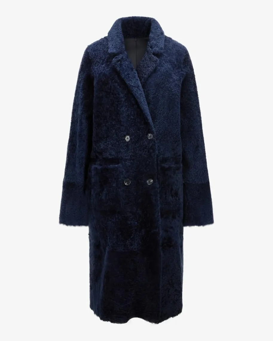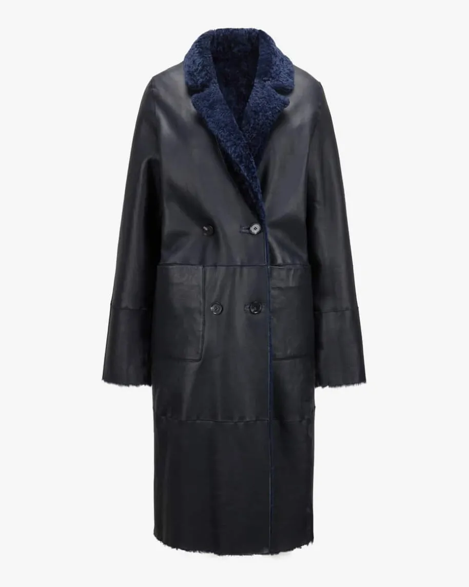 Goli Wende-Fellmantel für Damen von Nove in Dunkelblau. Das Modell begeistertmit derpraktischen Wende-Funktion. Während die hochwertige Schafsfell-Seite mit derwolligen Optik punktet, verleiht die die Leder-Innenseite dem Gesamtbild eineedle Note. Das klassische Design schafft zudem den letzten Schliff.