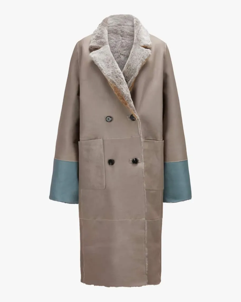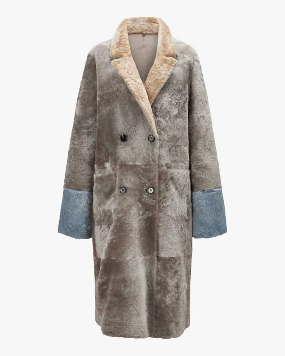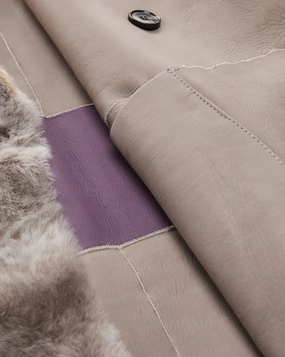 Goli Wende-Lammfellmantel für Damen von Nove in Hellgrau. DiesesModell aus weichem Lammfell begeistert mit der praktischen Wende-Funktion, dankwelcher das Modell zugleich mit der luxuriösen Leder-Qualität begeistert. Einzeitloser Begleiter mit dem gewissen Etwas.