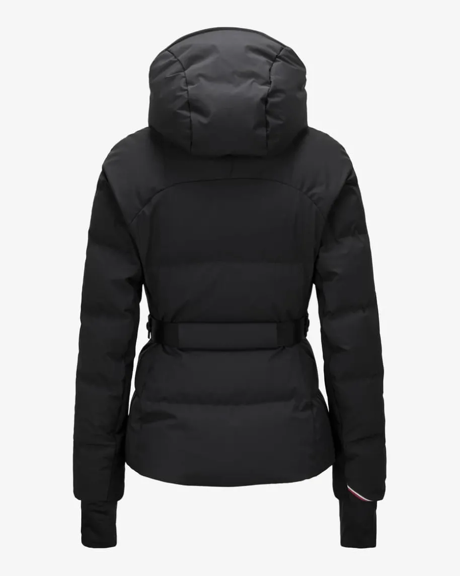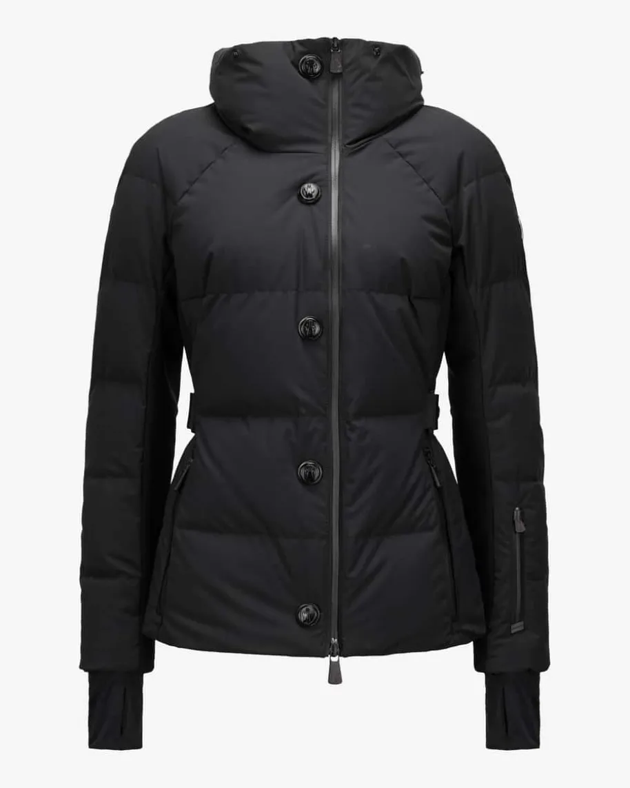 Guyane Skijacke für Damen von Moncler Grenoble in Schwarz. Das Modell derWintersport-Linie präsentiert sich dank tailliertem Schnitt mit abnehmbarenTaillengürtel in femininer Aufmachung, während die changierende Stepp-Optik mitoptimal isolierender Daunen-Feder-Füllung und zahlreiche weitere funktionaleDetails einen Favoriten für sportliche Wintertage schaffen.
