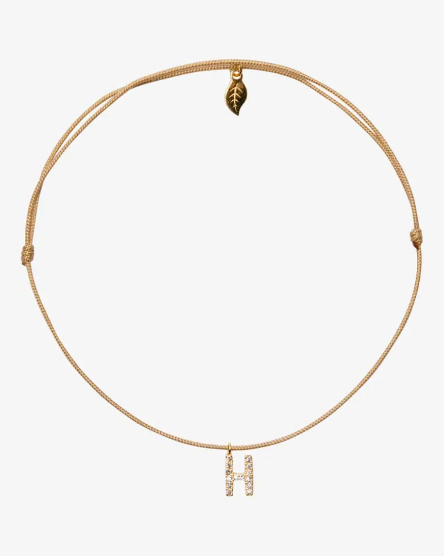 H-Glücksbändchen für Damen von Leaf in Beige und Gold. Das filigraneSchmuckstück besticht dank des diamantenbesetzten Anhängers aus Gold alsbesonderes Highlight, das sich perfekt für modische Lagen-Looks eignet.