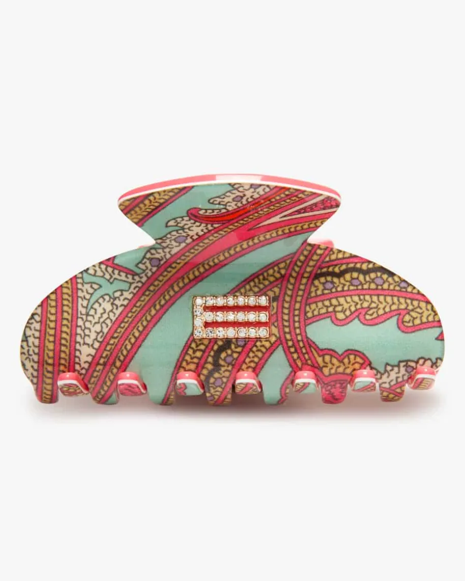 Haarklammer für Damen von Etro in Koralle, Türkis und Bunt. Die Haarspangezeichnet sich durch das labeltypische Paisley-Dessin sowie den edlenSchmuckstein-Besatz ausund avanciert so zum stilvollen Accessoire, das jeder Frisur das gewisse Etwasverleiht.