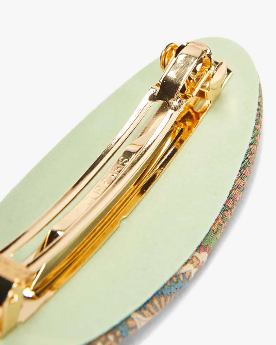 Haarspange für Damen von Etro in Himbeere, Taubenblau und Creme. Das Modell ausedler Seiden-Qualität avanciert zum stilvollen Accessoire, das jeder Frisur dasgewisse Etwas verleiht. Zugleich setzt das labeltypische Paisley-Muster dasGesamtbild gekonnt in Szene.