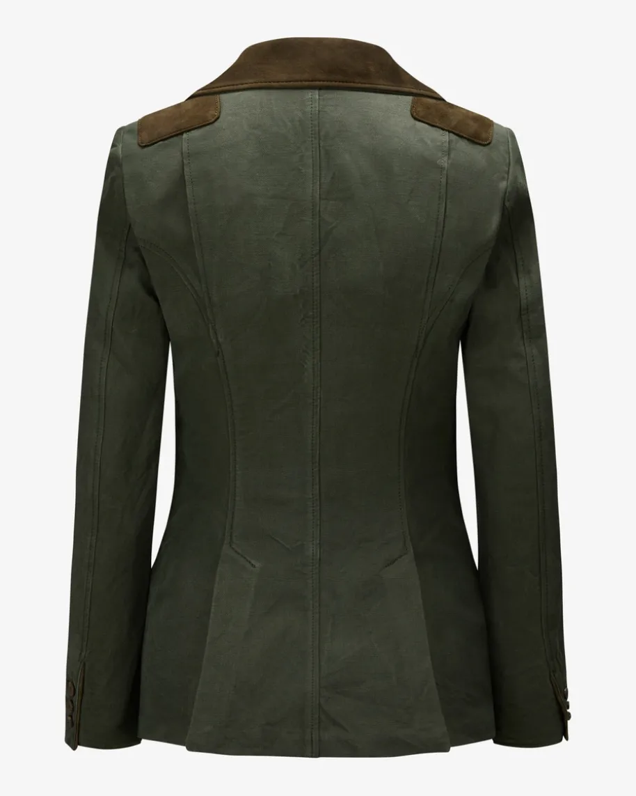 Hazel Trachtenblazer für Damen von Meindl in Safari Green. Das Modell ausBaumwoll-Leinen-Mix überzeugt dank klassischer Details in traditionellerAufmachung, während die Leder-Details und Ziernähte das Gesamtbild gekonntabrunden.