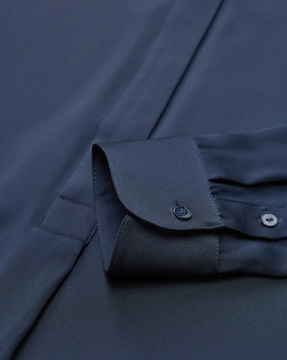 Hella Seidenbluse für Damen von Hemisphere in Marine. Für stilvolle Office-Looks- Dank hochwertiger, elastischer Seiden-Qualität überzeugt dieses Modell sowohlmit changierender Optik als auch mit angenehmem Tragegefühl. Die verkürzteKnopfleiste verleiht zugleich eine feminine Tunika-Ästhetik.