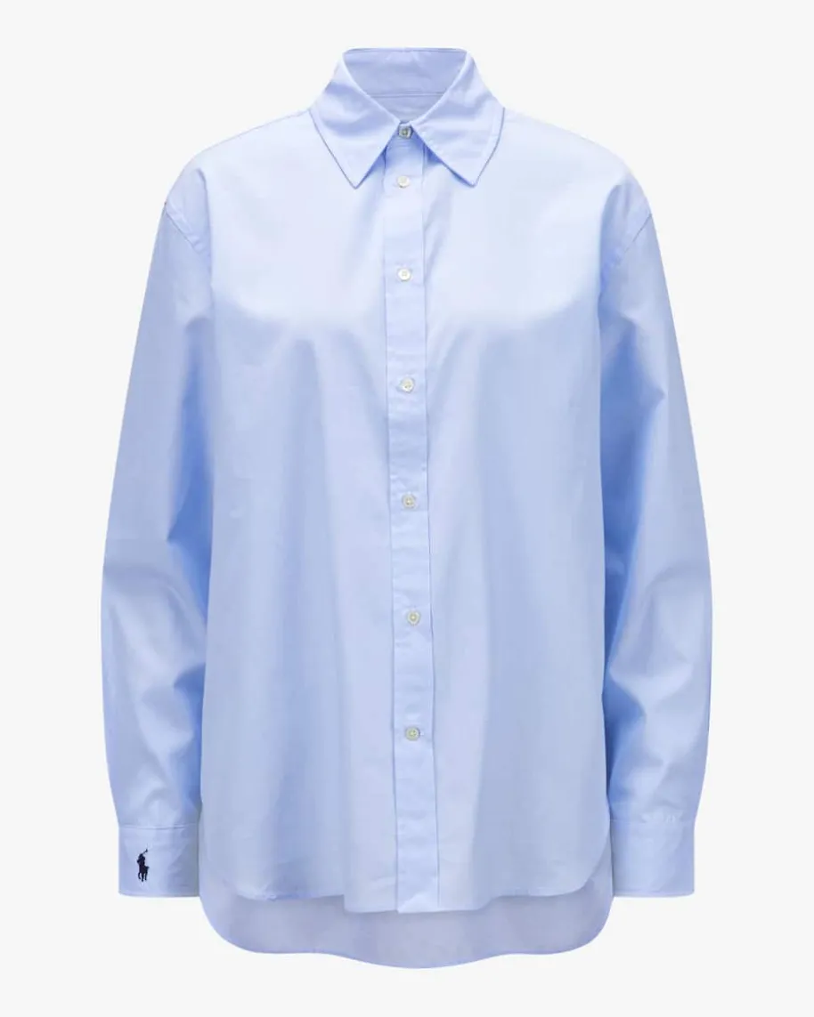 Hemdbluse für Damen von Polo Ralph Lauren in Hellblau. Qualität, Lifestyle,Authentizität und zeitlose Eleganz – all das zeichnet die Marke Polo RalphLauren seit nunmehr 50 Jahren Firmengeschichte aus. Das Modell präsentiert sichdank der angenehmen Baumwoll-Qualität als zeitloser Favorit, der durchklassische Details gekonnt vollendet wird.