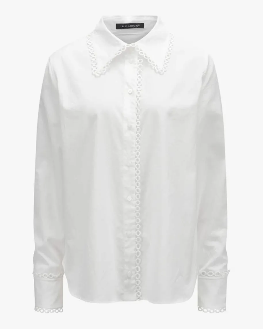 Hemdbluse für Damen von Luisa Cerano in Weiß. Das Modell avanciert zu Ihrenneuen Lieblings-Begleiter, ob im Office oder Casual zur Jeans, die leichteHaptik in Kombination mit der femininen Borte kreieren einen zeitlosen Look dersich vielseitig stylen lässt.