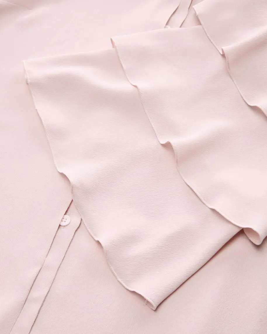 Hemdbluse für Damen von Luisa Cerano in Puder. Das Modell begeistert mitleichtem Seiden-Mix in feiner Struktur, welche ein angenehmes Tragegefühlbeschert. Das raffinierte Falten-Detail entlang der Knopfleiste sowie dieromantischen Volants-Ärmel kreieren einen femininen Gesamt-Look.