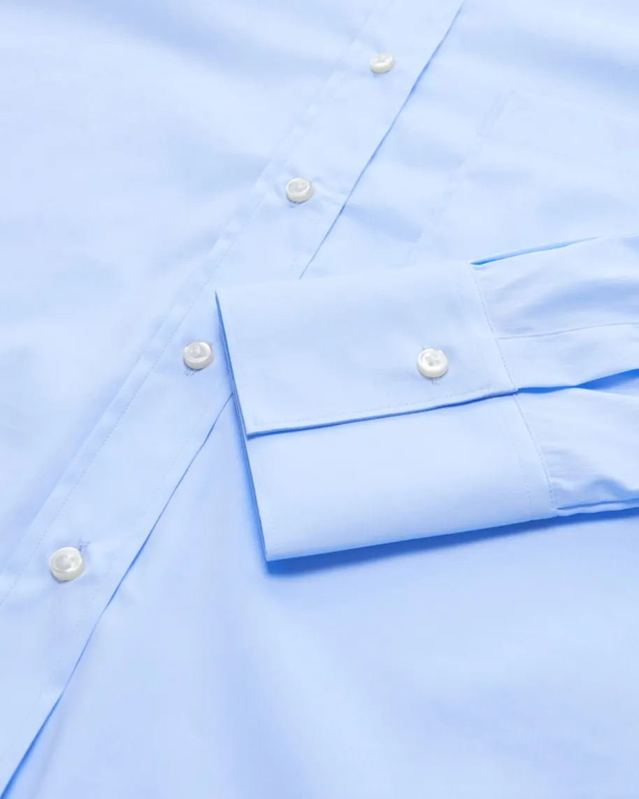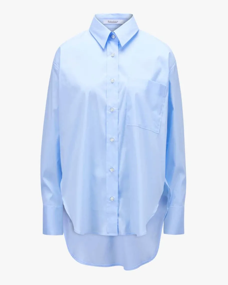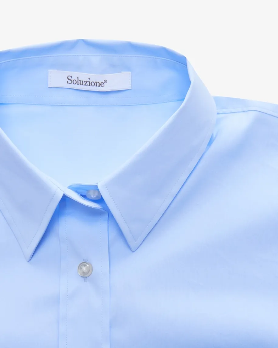 Hemdbluse für Damen von Soluzione in Hellblau. Während die angenehm elastischeBaumwoll-Qualität für hohen Tragekomfort sorgt, avanciert das Modell dank weiterPassform und verlängerter Rückseite zum stilvollen Business-Begleiter mitmodischem Touch.