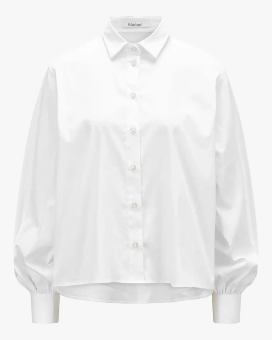 Hemdbluse für Damen von Soluzione in Weiß. Während die angenehm elastischeBaumwoll-Qualität für hohen Tragekomfort sorgt, avanciert das Modell dankmodisch legerer Passform und weiten Ärmeln zum stilvollen Begleiter mit demgewissen Etwas.