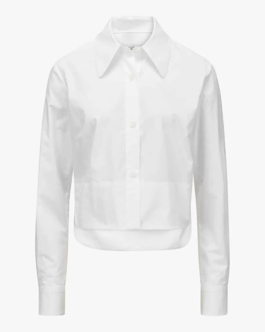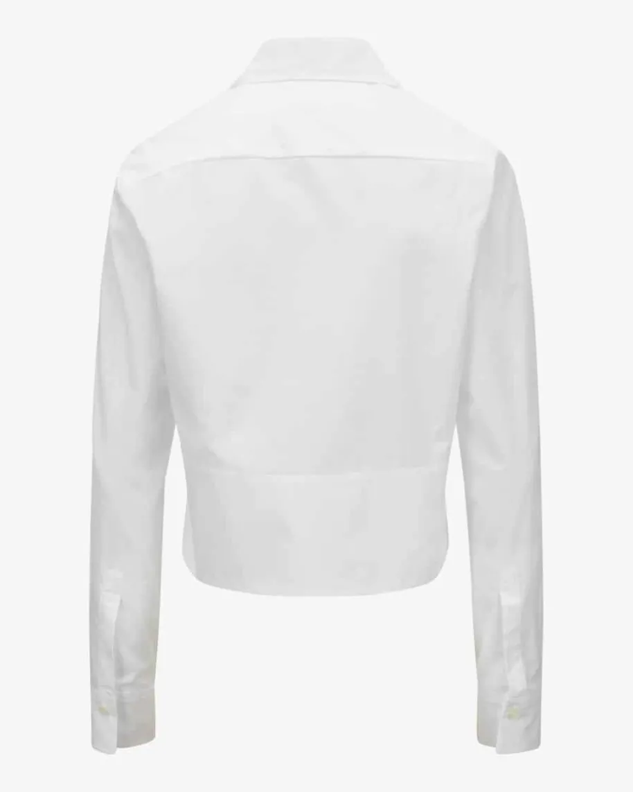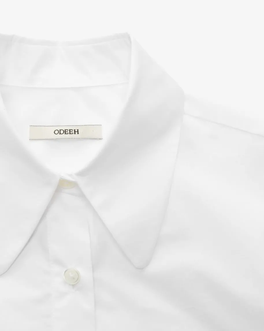 Hemdbluse für Damen von Odeeh in Weiß. Das Baumwoll-Modell überzeugt mitkastiger, leicht verkürzter Schnittführung und markantem Kragen, während dassonst klassische Hemdblusen-Design mit Brustabnähern einen femininen Power-Lookmit modernem Twist kreiert.