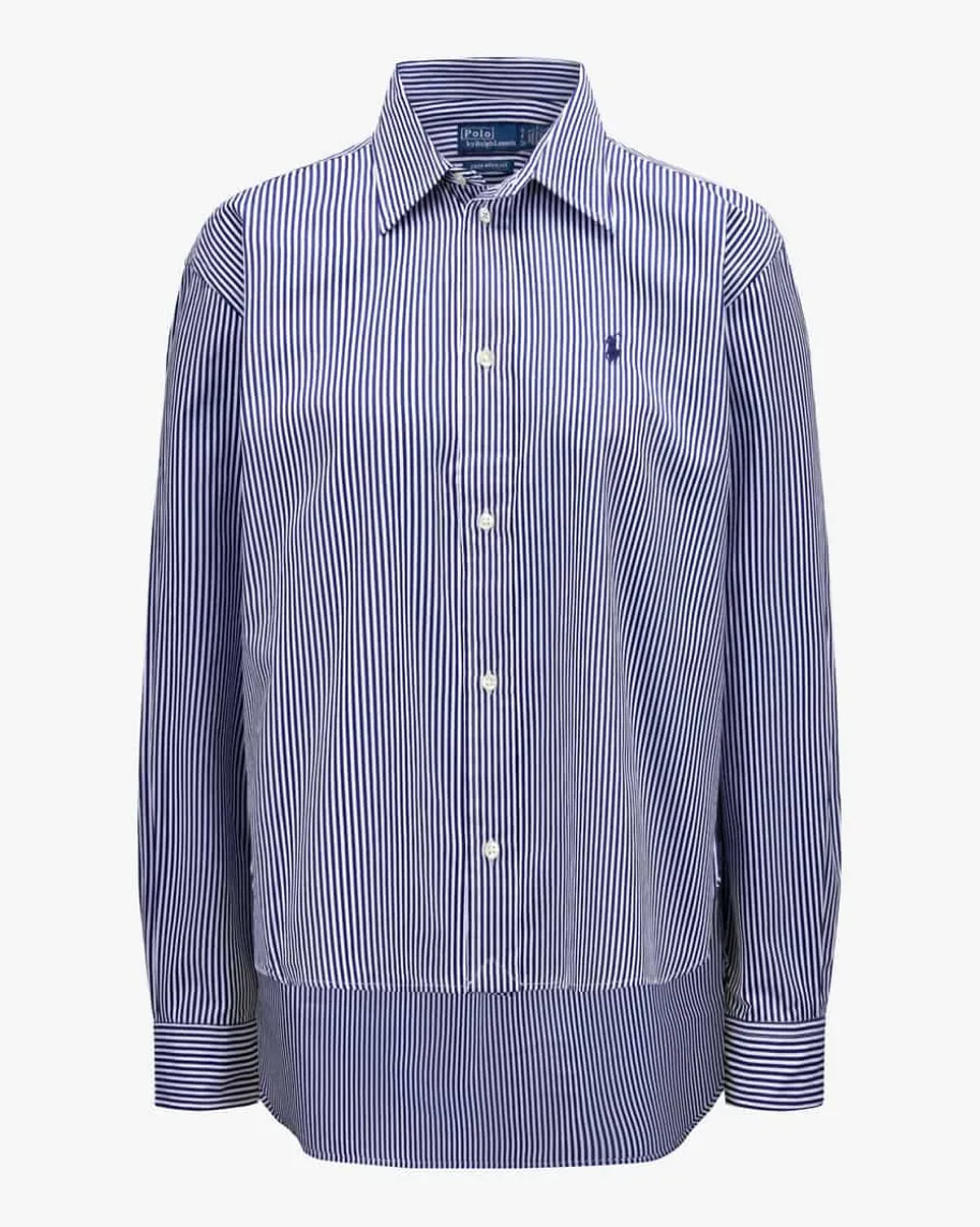 Hemdbluse für Damen von Polo Ralph Lauren Navy und Weiß. Das Modell überzeugtmit modischer Oversize-Passform und stilvollem Streifen-Dessin, während diecharakteristische Logo-Stickerei das Gesamtbild labeltypisch abrundet.