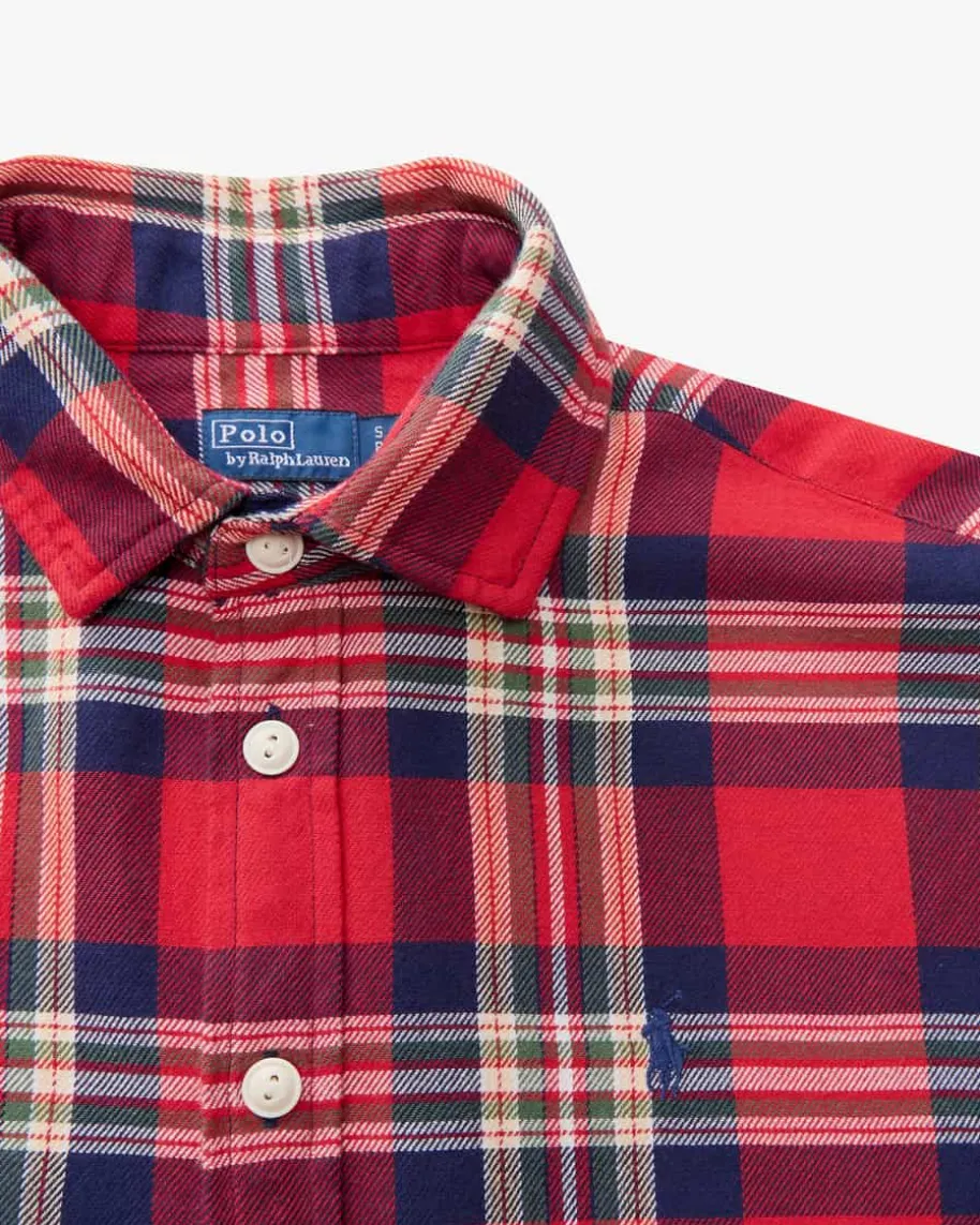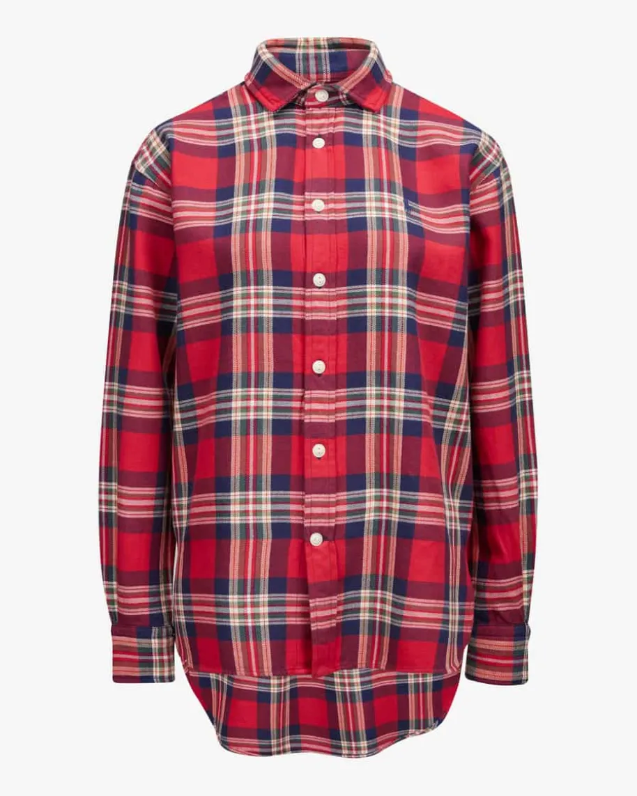 Hemdbluse Relaxed Fit für Damen von Polo Ralph Lauren in Rot und Bunt. DasModell aus weicher Baumwoll-Flanell-Qualität präsentiert sich als modischerFavorit im Classic Heritage Look, der durch das legere Karo-Dessin und dielabeltypische Poloreiter-Stickerei harmonisch abgerundet wird.