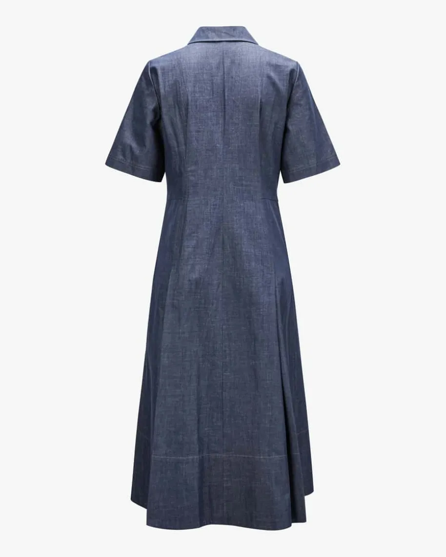 Hemdblusenkleid für Damen von Vince in Dunkelblau. Das Modell präsentiert sichmit ausgestellter Passform und klassischen Hemdblusen-Details, während derBaumwoll-Mix in Denim-Optik angenehmen Tragekomfort garantiert.
