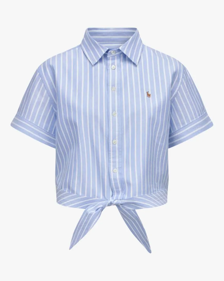 Hemdblusenshirt für Damen von Polo Ralph Lauren in Hellblau und Weiß. Das Modellüberzeugt mit angenehmer Baumwoll-Qualität und garantiert angenehmenTragekomfort, während das maritime Streifen-Dessin einen stilvollen Lookschafft. Die verkürzte Silhouette mit geknoteter Taille rundet den sommerlichenStyle harmonisch ab.