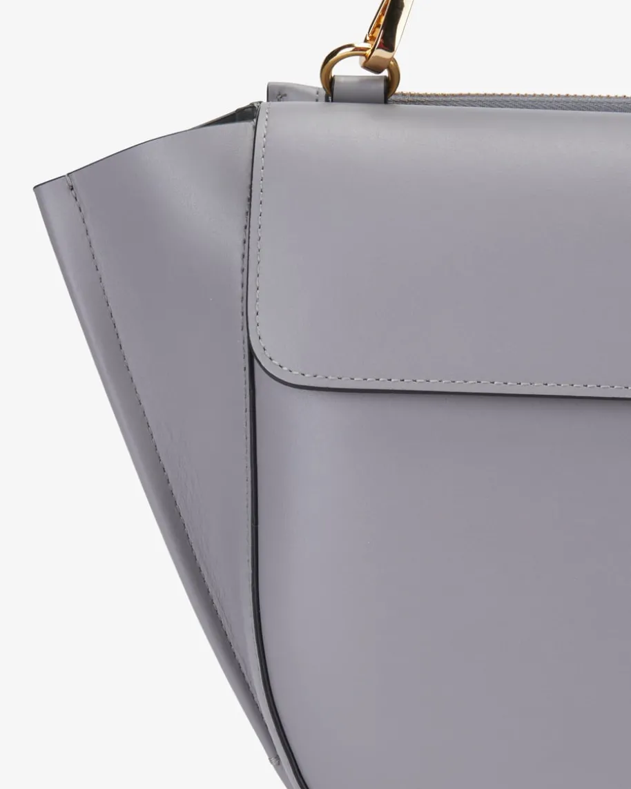 Hortensia Medium Henkeltasche für Damen von Wandler in Grau. Das ausitalienischem Leder gefertigte Modell besitzt eine markante runde Form undbietet genügend Platz für sämtliche Alltagsutensilien.