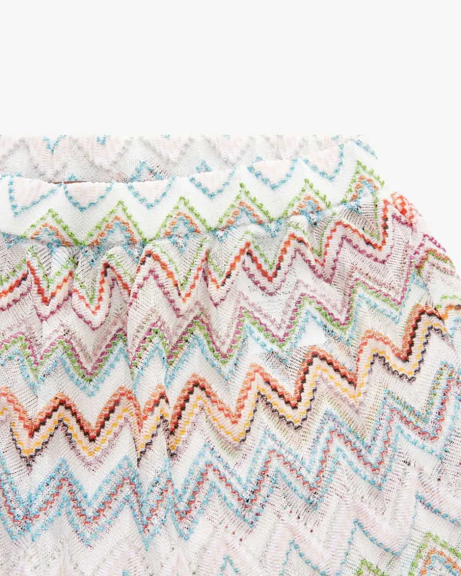 Hose für Damen von Missoni in Weiß und Bunt. Das Modell präsentiert sich imlabeltypischen Zick-Zack-Dessin, das durch die Glitzer-Details raffiniertergänzt wird. Die semitransparente Optik sorgt zudem für einen modischen Look.