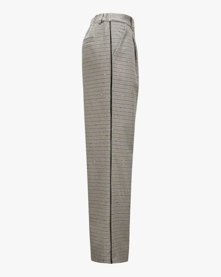 Hose für Damen von Shirtaporter in Blau, Creme und Gold. Dieses Modellpräsentiert sich mit feinem Karo-Webmuster und modisch-weitem Schnitt, währenddie Glitzer-Fasern und feine Pailletten edle Akzente setzen. Die Bundfalten undder teilelastische Bund runden den Look gekonnt ab.