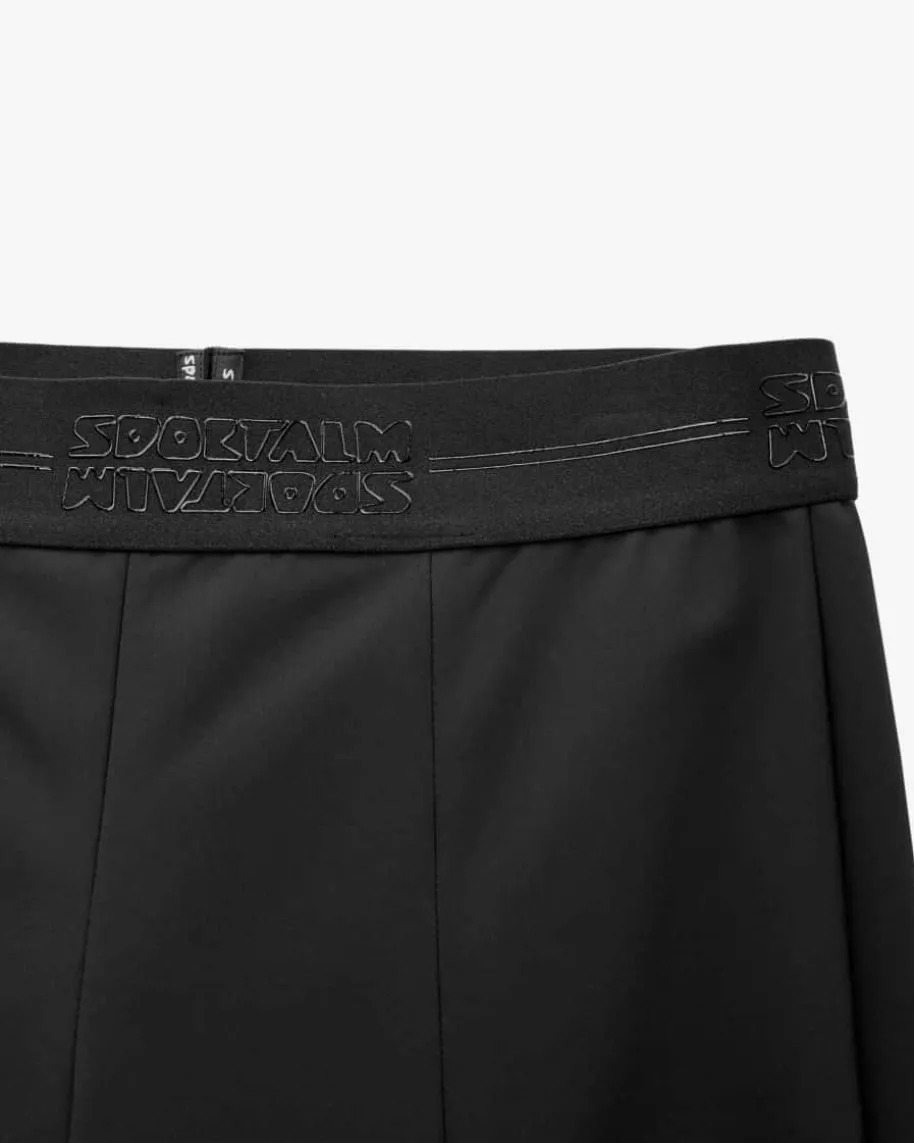 Hose für Damen von Sportalm Emotion in Schwarz. Das Modell präsentiert sich mitschmaler Passform, wobei die elastische Material-Qualität zusammen mit demGummibund für einen angenehmen Tragekomfort sorgt. Die geschlitzten Beinendenund der Logo-Schriftzug setzen zudem modische Akzente.