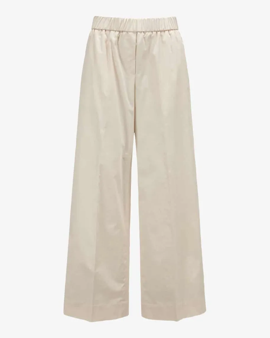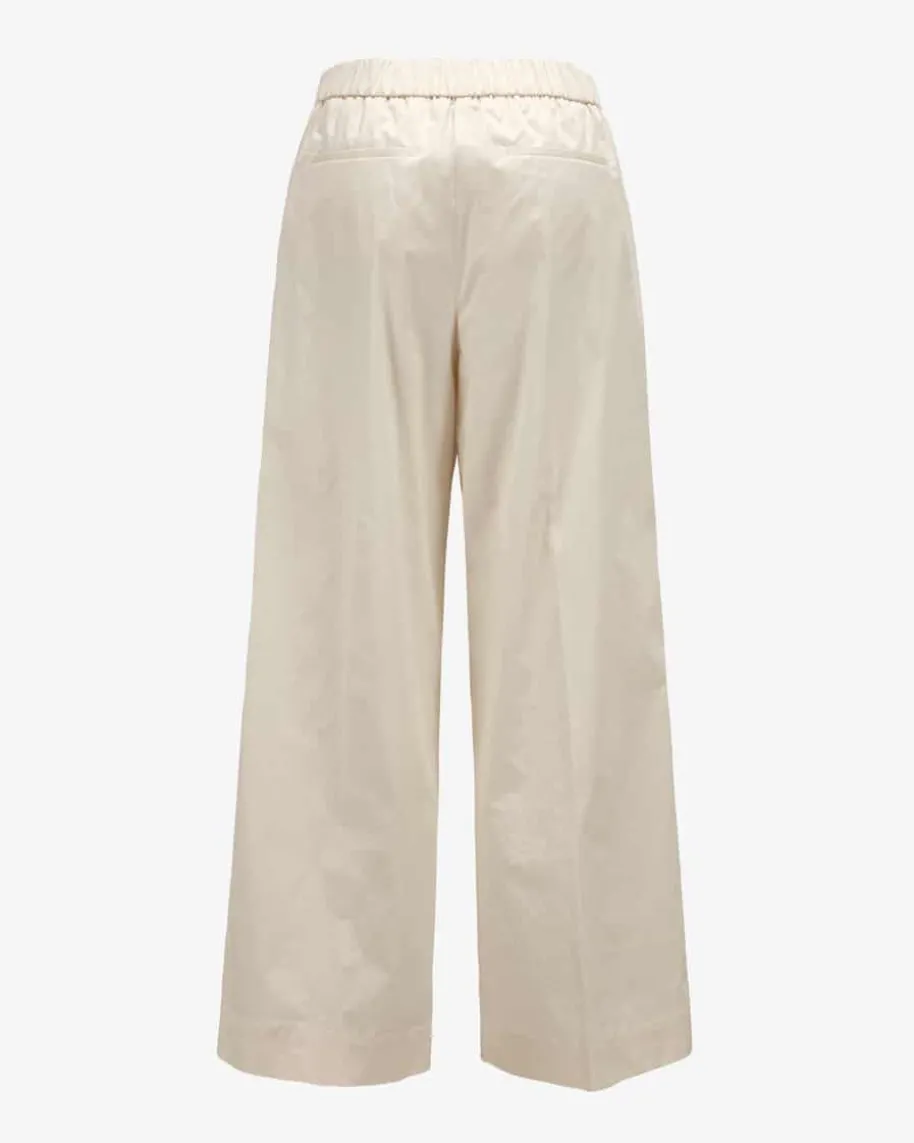 Hose für Damen von Peserico Easy in Stein. Das Modell präsentiert sich mitweiter Passform, während der elastische Bund und der leichte Baumwoll-Mixangenehmen Tragekomfort garantieren und den Look stilvoll abrunden.