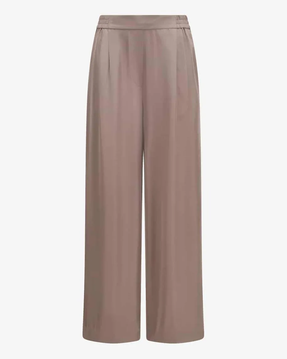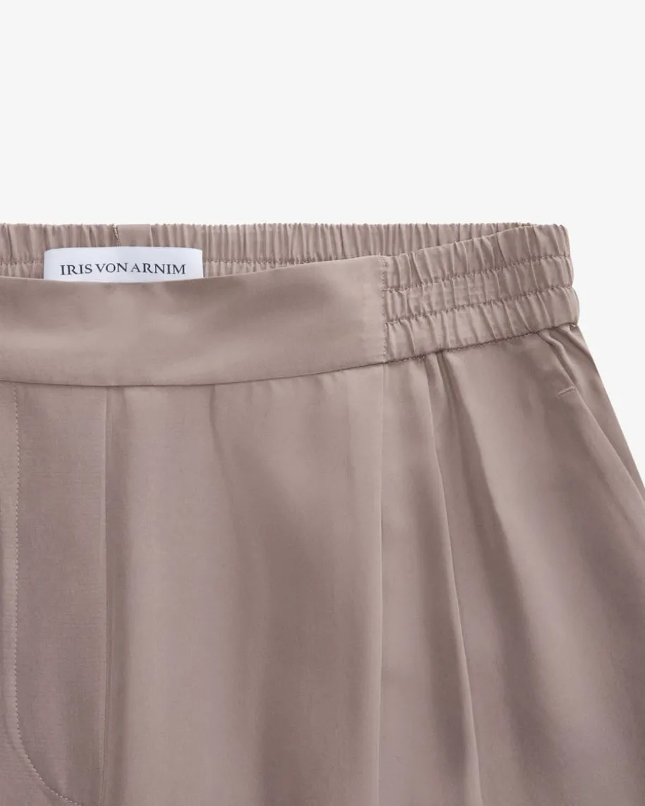 Seidenhose für Damen von Iris von Arnim in Taupe. Das Modell avanciert dankweitem Bein mit stilvollen Bundfalten zum modernen Must-Have in IhremKleiderschrank, welches durch die changierende Seiden-Qualität für besondersleichten Tragekomfort sorgt und einen besonderen Charakter erhält.